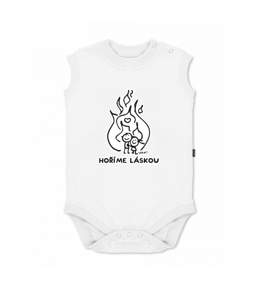 We make sustainable UAX clothing! - hand sewn in the Czech Republic uaxKids uaxAll productsBaby bodyBABY BODY SLEEVELESSdesign 1208 - HOŘÍME LÁSKOUWHITE