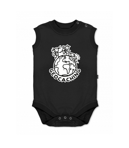 Baby body sleeveless with design for kid with design 1215 GEOCACHING in color BLACK