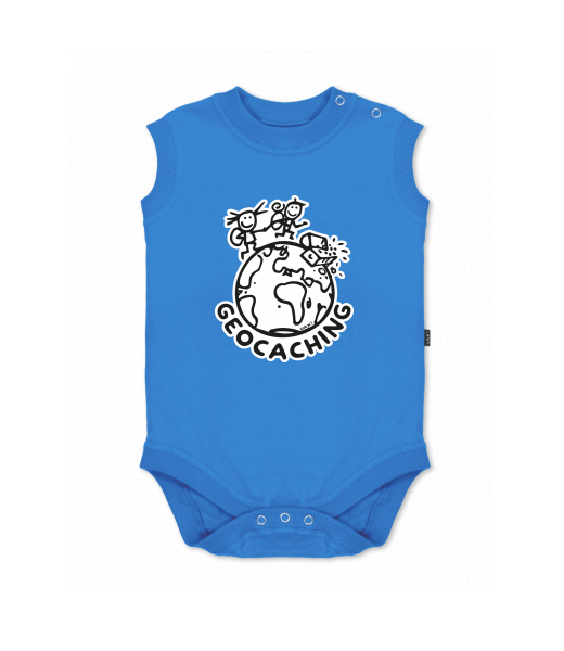 Baby body sleeveless with design for kid with design 1215 GEOCACHING in color CAPRI BLUE