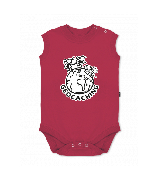 Baby body sleeveless with design for kid with design 1215 GEOCACHING in color CHILLY PEPPER RED