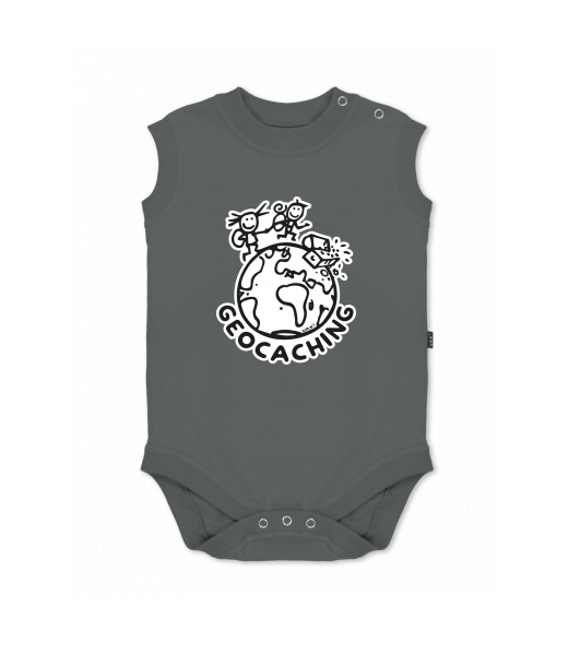 Baby body sleeveless with design for kid with design 1215 GEOCACHING in color DARK GRAY
