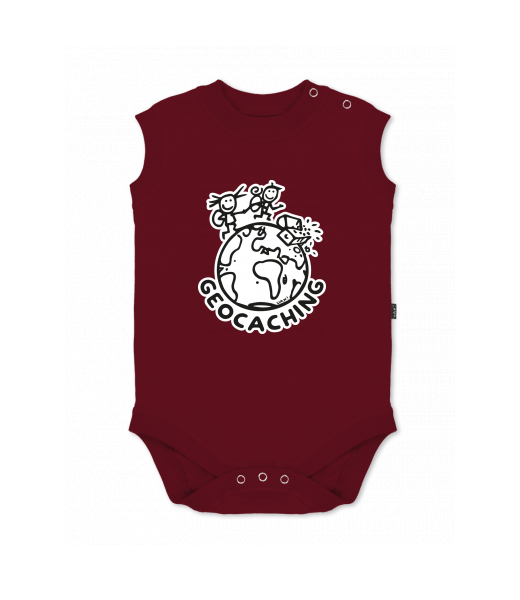 Baby body sleeveless with design for kid with design 1215 GEOCACHING in color DARK RED