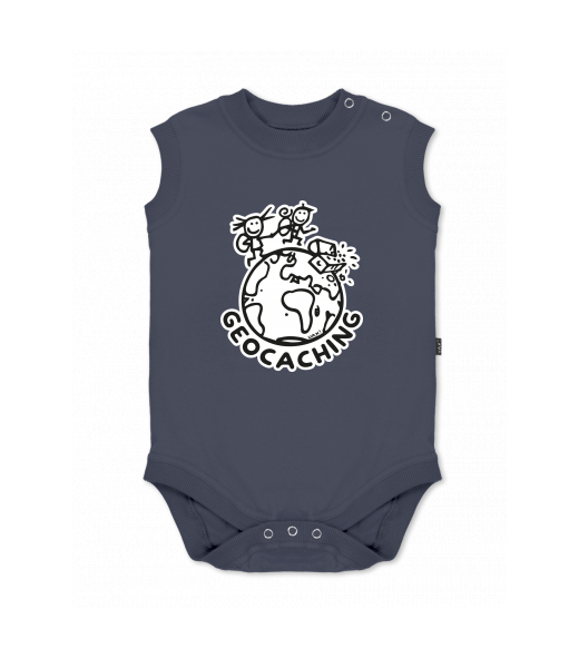 Baby body sleeveless with design for kid with design 1215 GEOCACHING in color GRAY INK