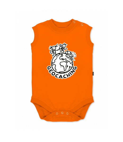 Baby body sleeveless with design for kid with design 1215 GEOCACHING in color SIGNAL ORANGE