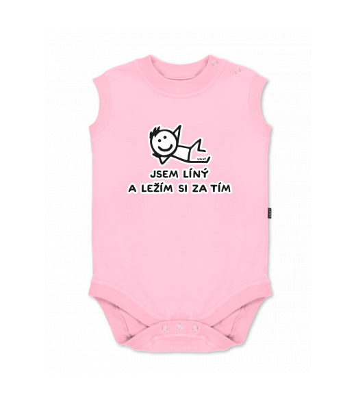 We make sustainable UAX clothing! - hand sewn in the Czech Republic uaxKids uaxAll productsBaby bodyBABY BODY SLEEVELESSdesign 1217 - JSEM LÍNÝ A LEŽÍM SI ZA TÍMBABY PINK