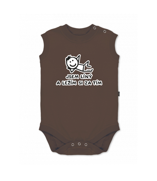Baby body sleeveless with design for kid with design 1217 JSEM LÍNÝ A LEŽÍM SI ZA TÍM in color CHESTNUT