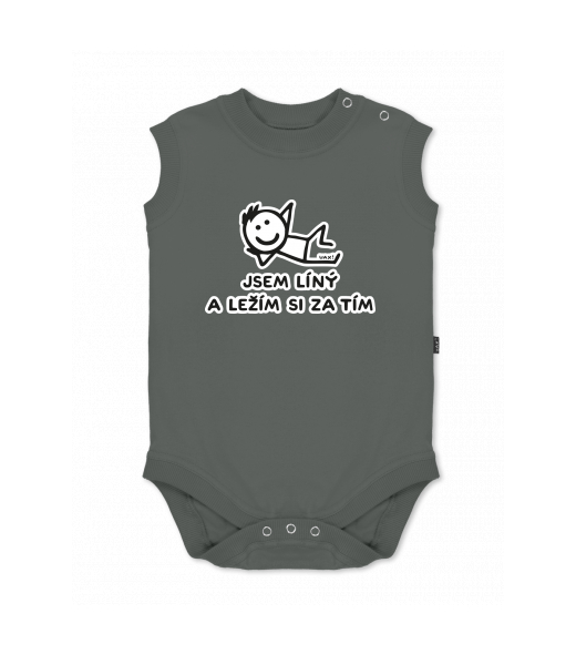 We make sustainable UAX clothing! - hand sewn in the Czech Republic uaxKids uaxAll productsBaby bodyBABY BODY SLEEVELESSdesign 1217 - JSEM LÍNÝ A LEŽÍM SI ZA TÍMDARK GRAY