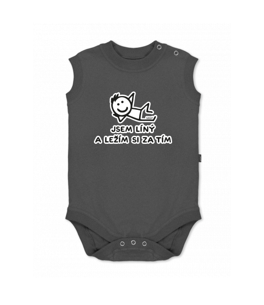 Baby body sleeveless with design for kid with design 1217 JSEM LÍNÝ A LEŽÍM SI ZA TÍM in color GRAFIT