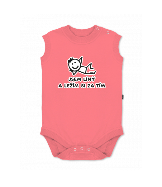 Baby body sleeveless with design for kid with design 1217 JSEM LÍNÝ A LEŽÍM SI ZA TÍM in color LOSOSOVA