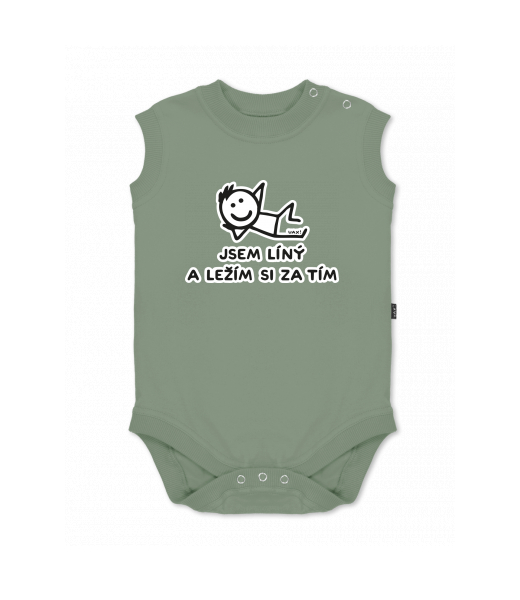 Baby body sleeveless with design for kid with design 1217 JSEM LÍNÝ A LEŽÍM SI ZA TÍM in color OLIVA