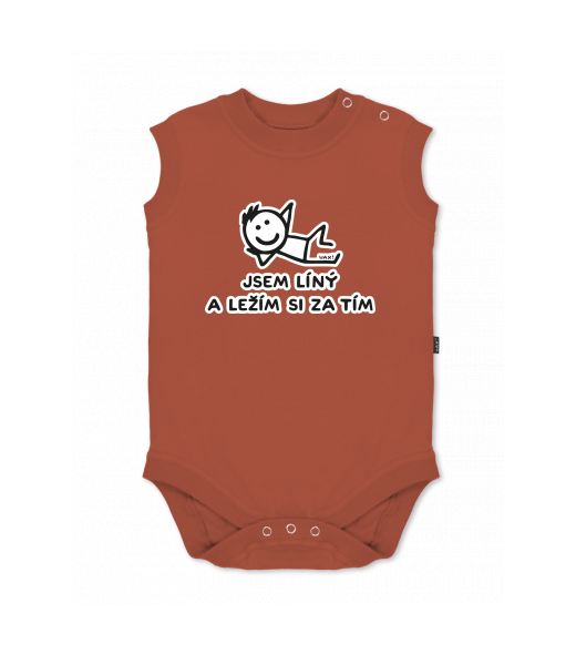 Baby body sleeveless with design for kid with design 1217 JSEM LÍNÝ A LEŽÍM SI ZA TÍM in color TERRA
