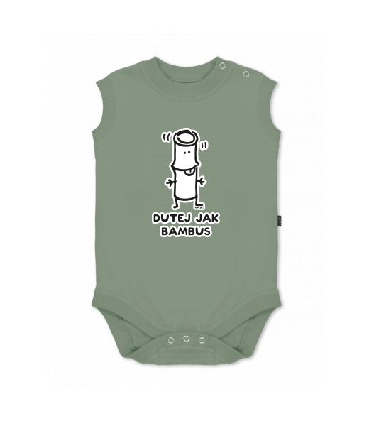 Baby body sleeveless with design for kid with design 1218 DUTEJ JAK BAMBUS in color OLIVA