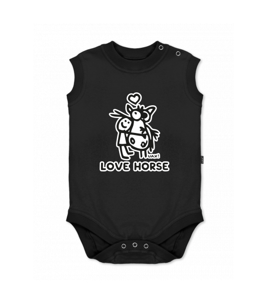 Baby body sleeveless with design for kid with design 1219 LOVE HORSE in color BLACK
