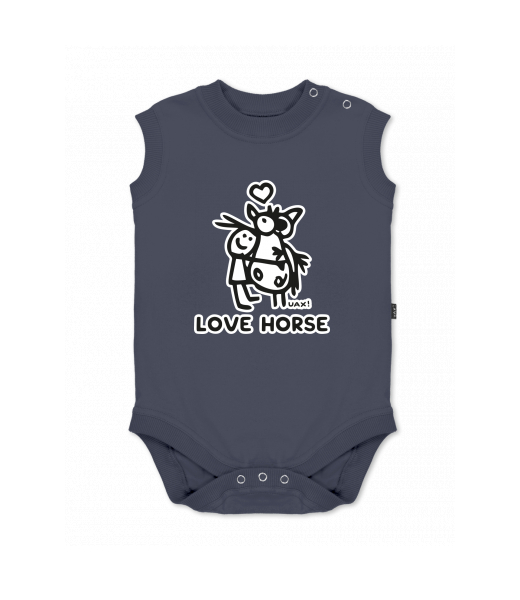 We make sustainable UAX clothing! - hand sewn in the Czech Republic uaxKids uaxAll productsBaby bodyBABY BODY SLEEVELESSdesign 1219 - LOVE HORSEGRAY INK