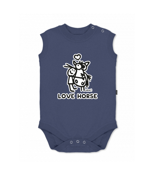 Baby body sleeveless with design for kid with design 1219 LOVE HORSE in color JEANS