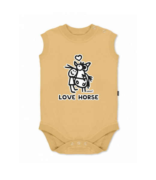 We make sustainable UAX clothing! - hand sewn in the Czech Republic uaxKids uaxAll productsBaby bodyBABY BODY SLEEVELESSdesign 1219 - LOVE HORSEMUSTARD