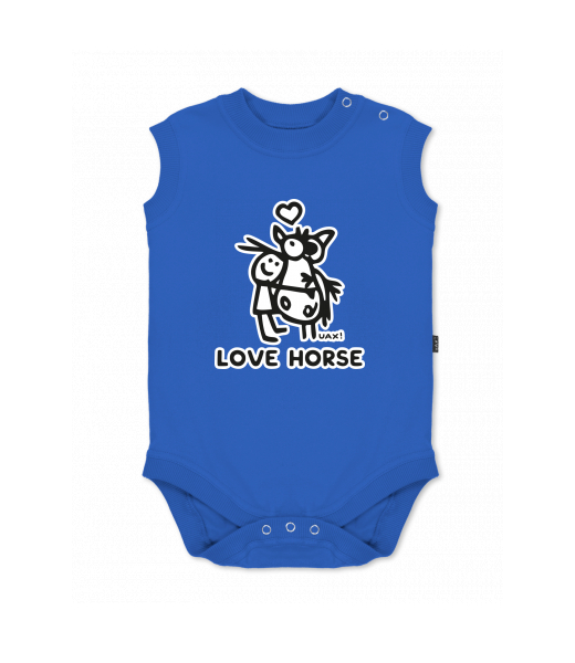 We make sustainable UAX clothing! - hand sewn in the Czech Republic uaxKids uaxAll productsBaby bodyBABY BODY SLEEVELESSdesign 1219 - LOVE HORSEROYAL BLUE