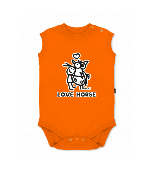 We make sustainable UAX clothing! - hand sewn in the Czech Republic uaxKids uaxAll productsBaby bodyBABY BODY SLEEVELESSdesign 1219 - LOVE HORSESIGNAL ORANGE
