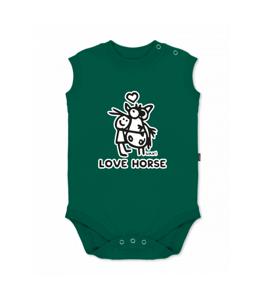 We make sustainable UAX clothing! - hand sewn in the Czech Republic uaxKids uaxAll productsBaby bodyBABY BODY SLEEVELESSdesign 1219 - LOVE HORSEUNIVERSITY GREEN