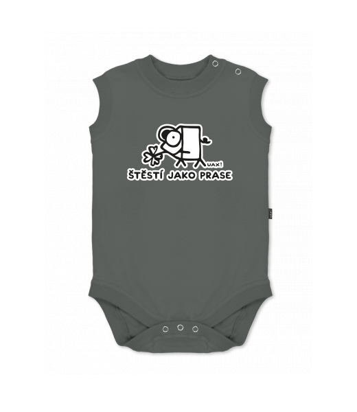 We make sustainable UAX clothing! - hand sewn in the Czech Republic uaxKids uaxAll productsBaby bodyBABY BODY SLEEVELESSdesign 1220 - ŠTĚSTÍ JAKO PRASEDARK GRAY