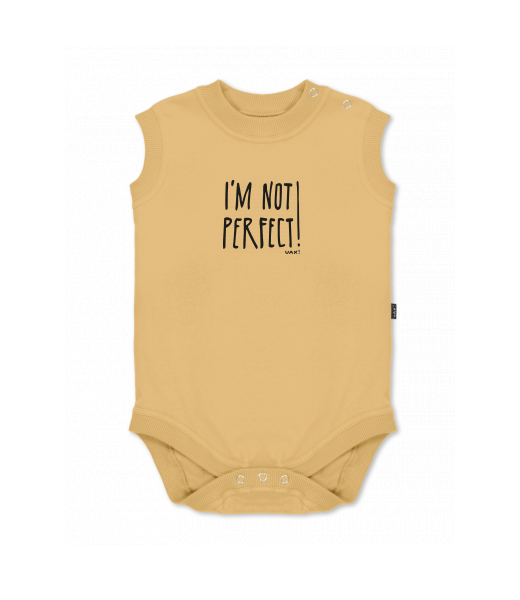 Baby body sleeveless with design for kid with design 1230 IM NOT PERFECT in color MUSTARD