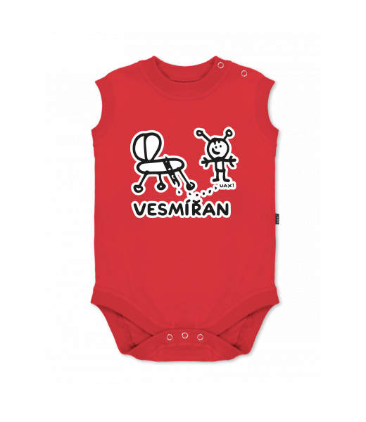 Baby body sleeveless with design for kid with design 1232 VESMÍŘAN in color RED
