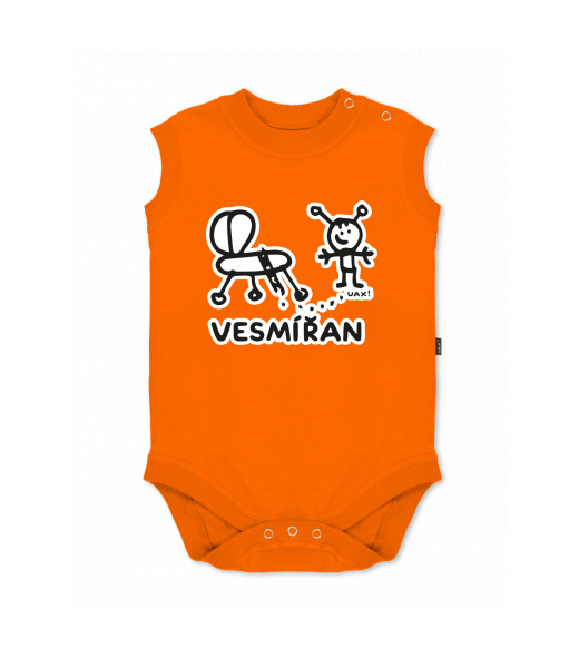 Baby body sleeveless with design for kid with design 1232 VESMÍŘAN in color SIGNAL ORANGE