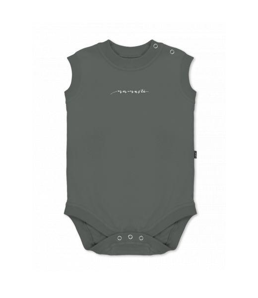 Baby body sleeveless with design for kid with design 1234 NAMASTE in color DARK GRAY