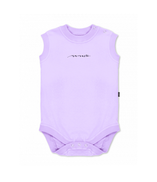 Baby body sleeveless with design for kid with design 1234 NAMASTE in color LAVENDER