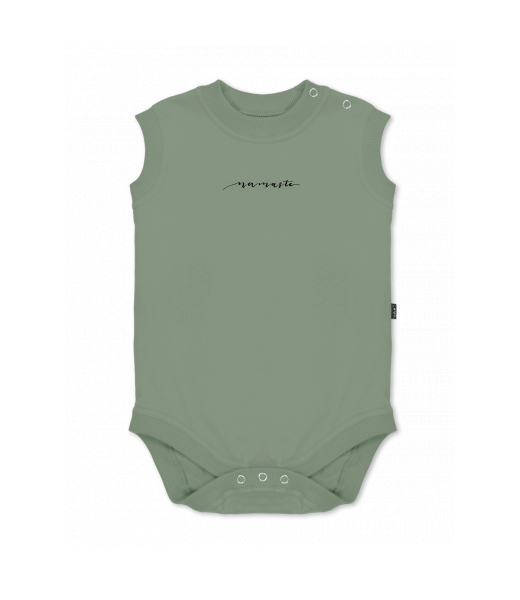 Baby body sleeveless with design for kid with design 1234 NAMASTE in color OLIVA