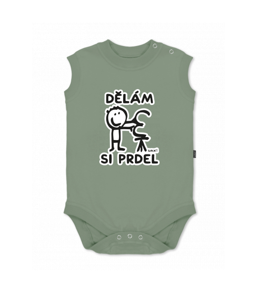 Baby body sleeveless with design for kid with design 1235 DĚLÁM SI PRDEL in color OLIVA