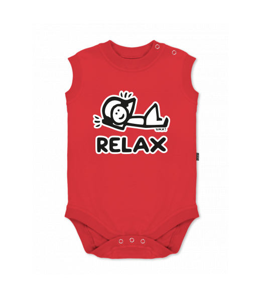 Baby body sleeveless with design for kid with design 1236 RELAX in color RED