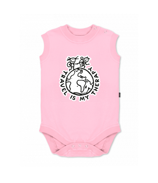 Baby body sleeveless with design for kid with design 1240 TRAVEL IS MY THERAPY in color BABY PINK