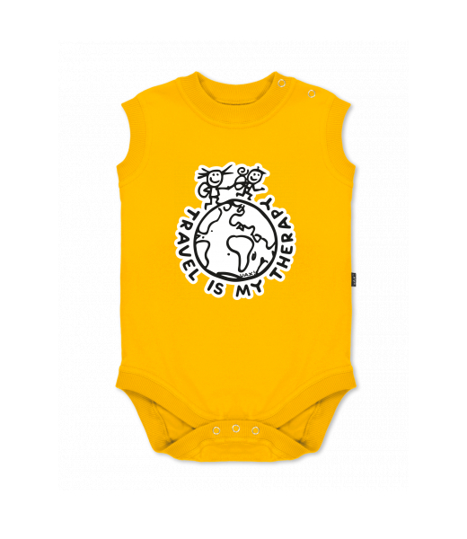 Baby body sleeveless with design for kid with design 1240 TRAVEL IS MY THERAPY in color GOLDEN CREAM