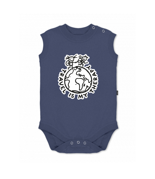 Baby body sleeveless with design for kid with design 1240 TRAVEL IS MY THERAPY in color JEANS
