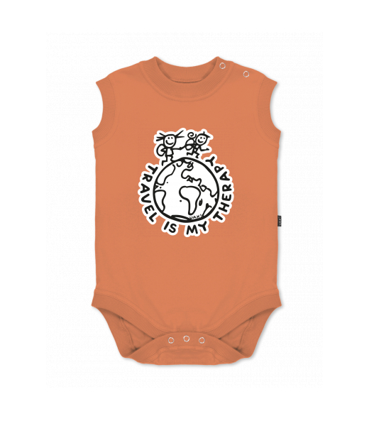 Baby body sleeveless with design for kid with design 1240 TRAVEL IS MY THERAPY in color MANDARIAN ORANGE