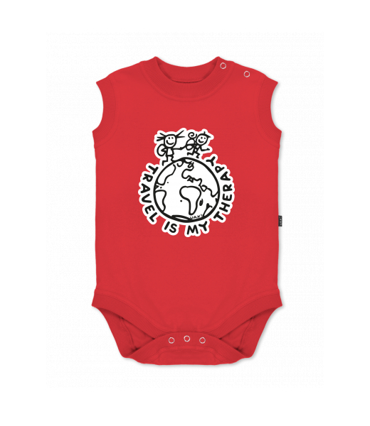 Baby body sleeveless with design for kid with design 1240 TRAVEL IS MY THERAPY in color RED