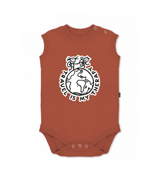 Baby body sleeveless with design for kid with design 1240 TRAVEL IS MY THERAPY in color TERRA