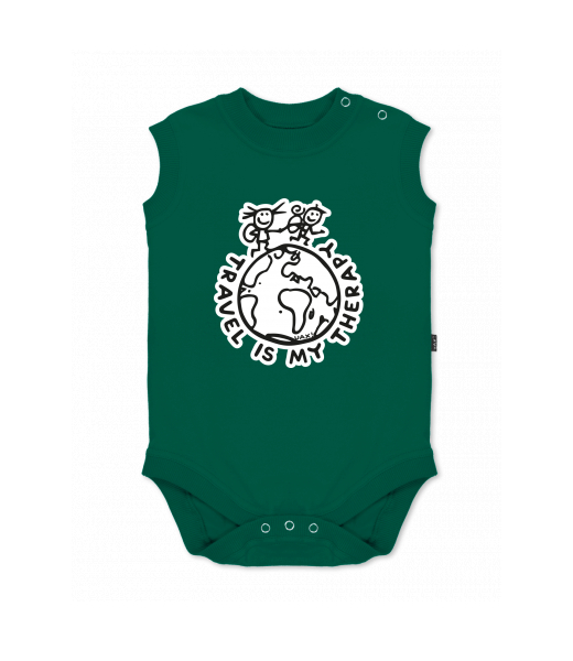 Baby body sleeveless with design for kid with design 1240 TRAVEL IS MY THERAPY in color UNIVERSITY GREEN