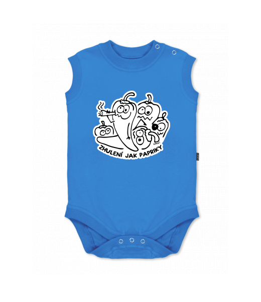 Baby body sleeveless with design for kid with design 1245 ZHULENÍ JAK PAPRIKY in color CAPRI BLUE