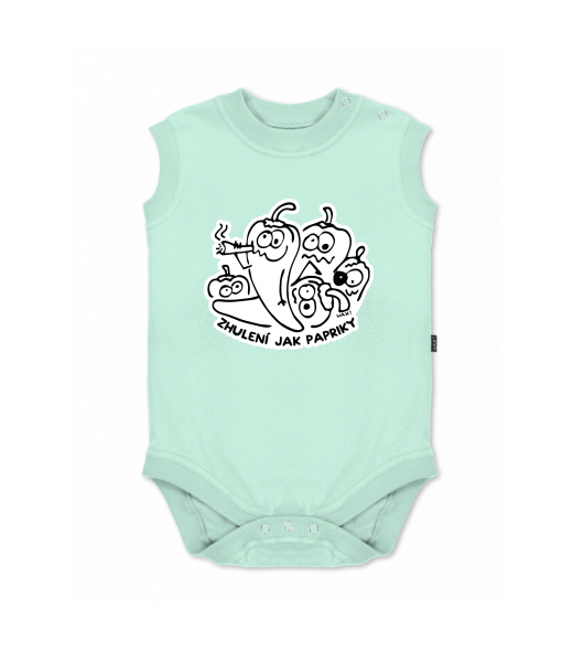 Baby body sleeveless with design for kid with design 1245 ZHULENÍ JAK PAPRIKY in color MINT
