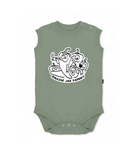 Baby body sleeveless with design for kid with design 1245 ZHULENÍ JAK PAPRIKY in color OLIVA