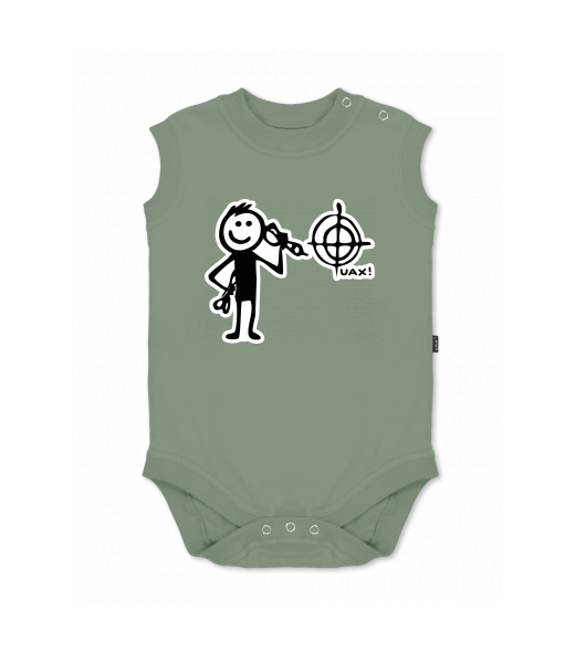 Baby body sleeveless with design for kid with design 1249 ŠIPKY in color OLIVA