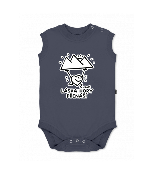We make sustainable UAX clothing! - hand sewn in the Czech Republic uaxKids uaxAll productsBaby bodyBABY BODY SLEEVELESSdesign 1264 - LÁSKA HORY PŘENÁŠÍGRAY INK