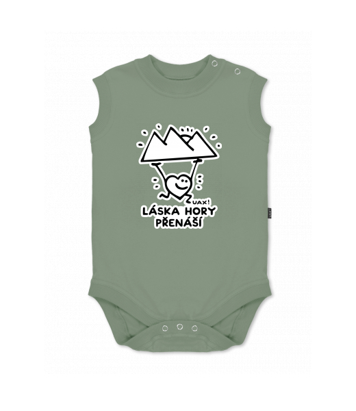 Baby body sleeveless with design for kid with design 1264 LÁSKA HORY PŘENÁŠÍ in color OLIVA