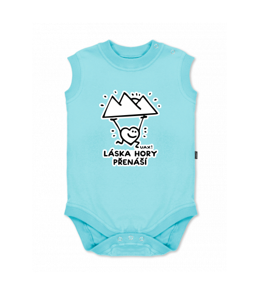 Baby body sleeveless with design for kid with design 1264 LÁSKA HORY PŘENÁŠÍ in color PASTEL BLUE