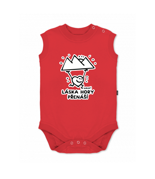 Baby body sleeveless with design for kid with design 1264 LÁSKA HORY PŘENÁŠÍ in color RED