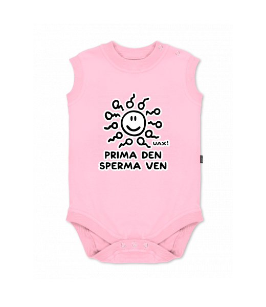Baby body sleeveless with design for kid with design 1265 PRIMA DEN SPERMA VEN in color BABY PINK