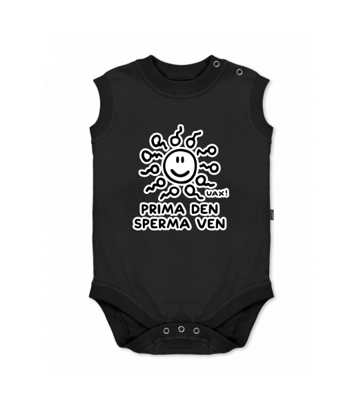 We make sustainable UAX clothing! - hand sewn in the Czech Republic uaxKids uaxAll productsBaby bodyBABY BODY SLEEVELESSdesign 1265 - PRIMA DEN SPERMA VENBLACK