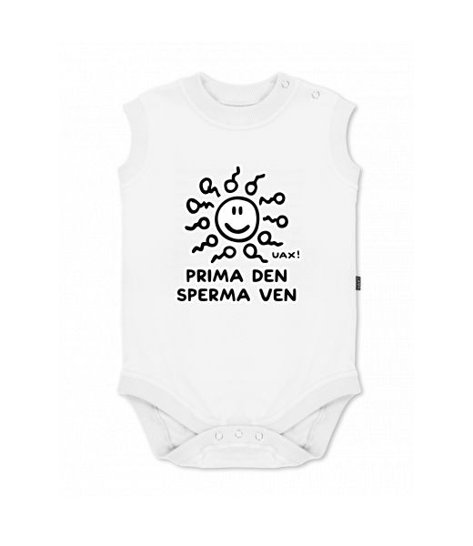 We make sustainable UAX clothing! - hand sewn in the Czech Republic uaxKids uaxAll productsBaby bodyBABY BODY SLEEVELESSdesign 1265 - PRIMA DEN SPERMA VENWHITE
